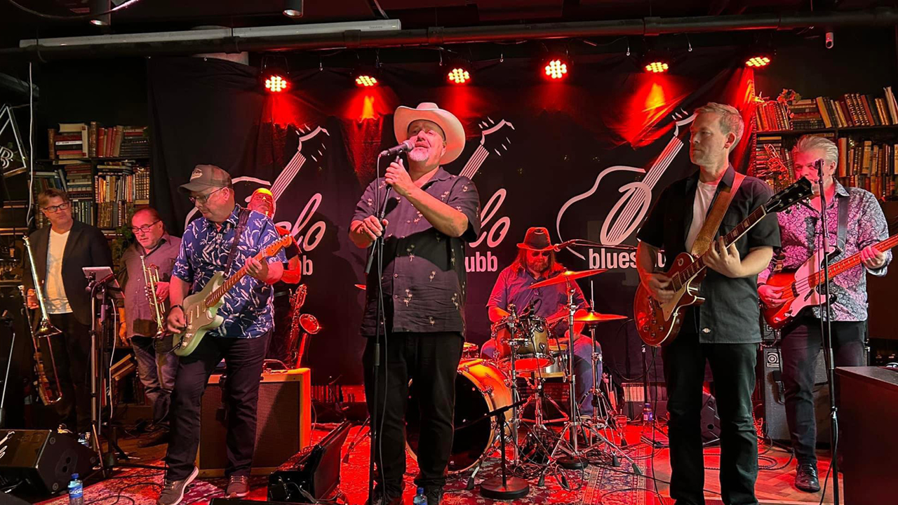 I Slemmestad Mek blir det fullt band og blåserekke. Publikum kan glede seg til et skikkelig bluesparty!